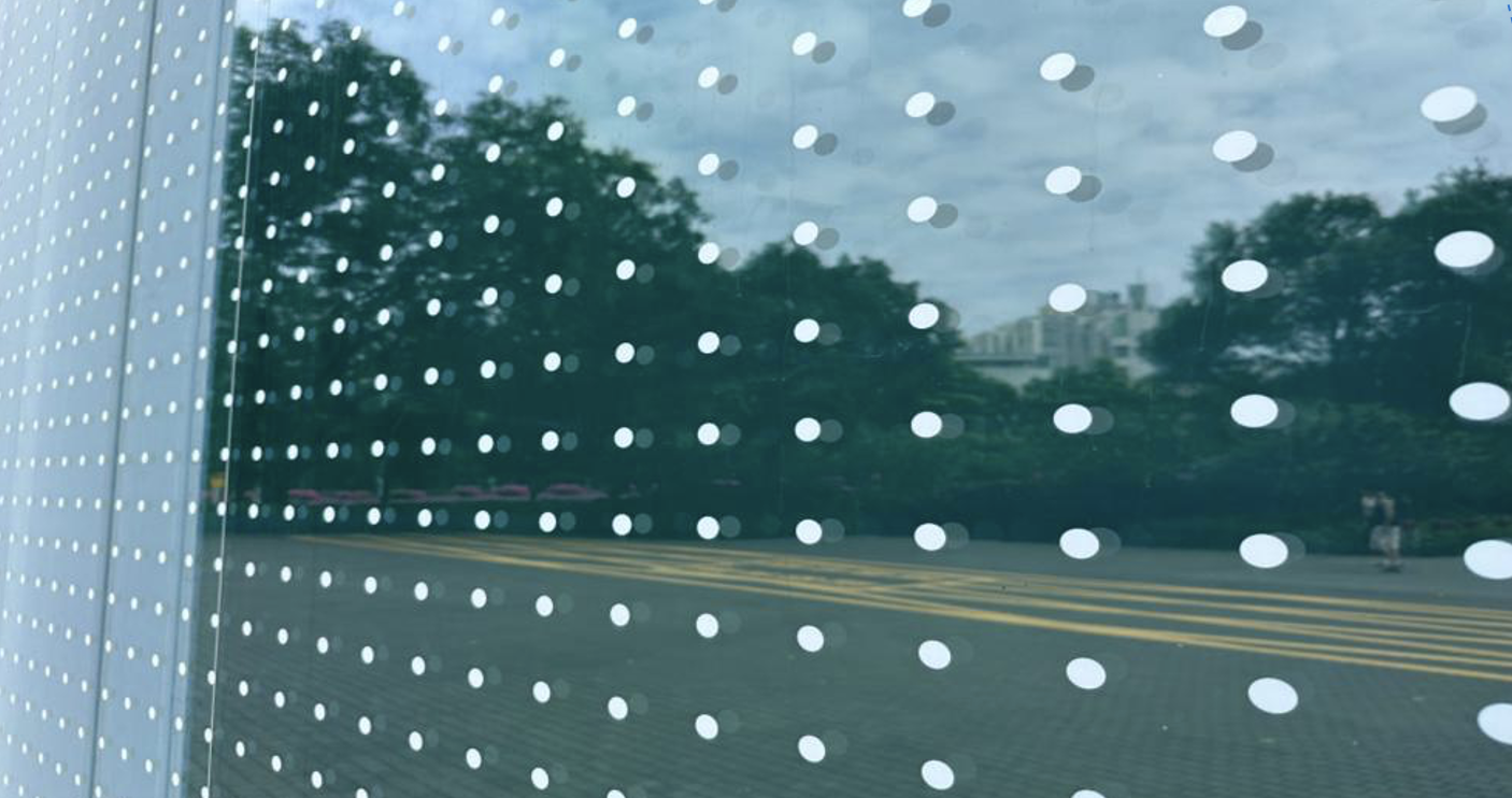The polka dot film on the building can save birds from fatal collisions.