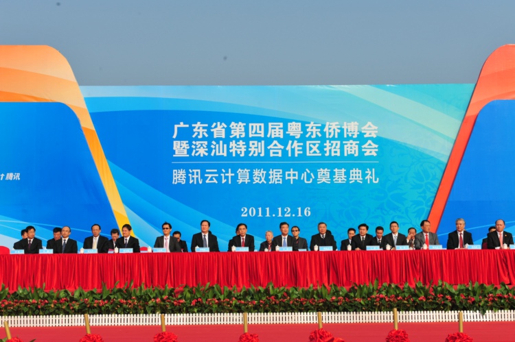 On December 16 Tencent Technology (Shenzhen) Co. Ltd. held a foundation laying ceremony for its Shenzhen-Shantou Cloud Computing Data Center in the Shenzhen-Shantou Special Cooperation Zone. Member of Political Bureau of the Central Committee of the CPC and Guangdong Party Secretary Wang Yang Deputy Secretary of Guangdong Provincial Party Committee and Acting Governor of Guangdong Province Zhu Xiaodan Guangdong Party Committee Standing Member & Shenzhen Party Secretary Wang Rong Shenzhen Mayor Xu Qin Shanwei Party Secretary Zhen Yanxiong Acting Shanwei Mayor Wu Zhili and other provincial and municipal officials as well as Tencent Co-Founder Chairman & CEO Pony Ma and Tencent Co-Founder and CAO Charles Chen laid earth for the foundation of the project.