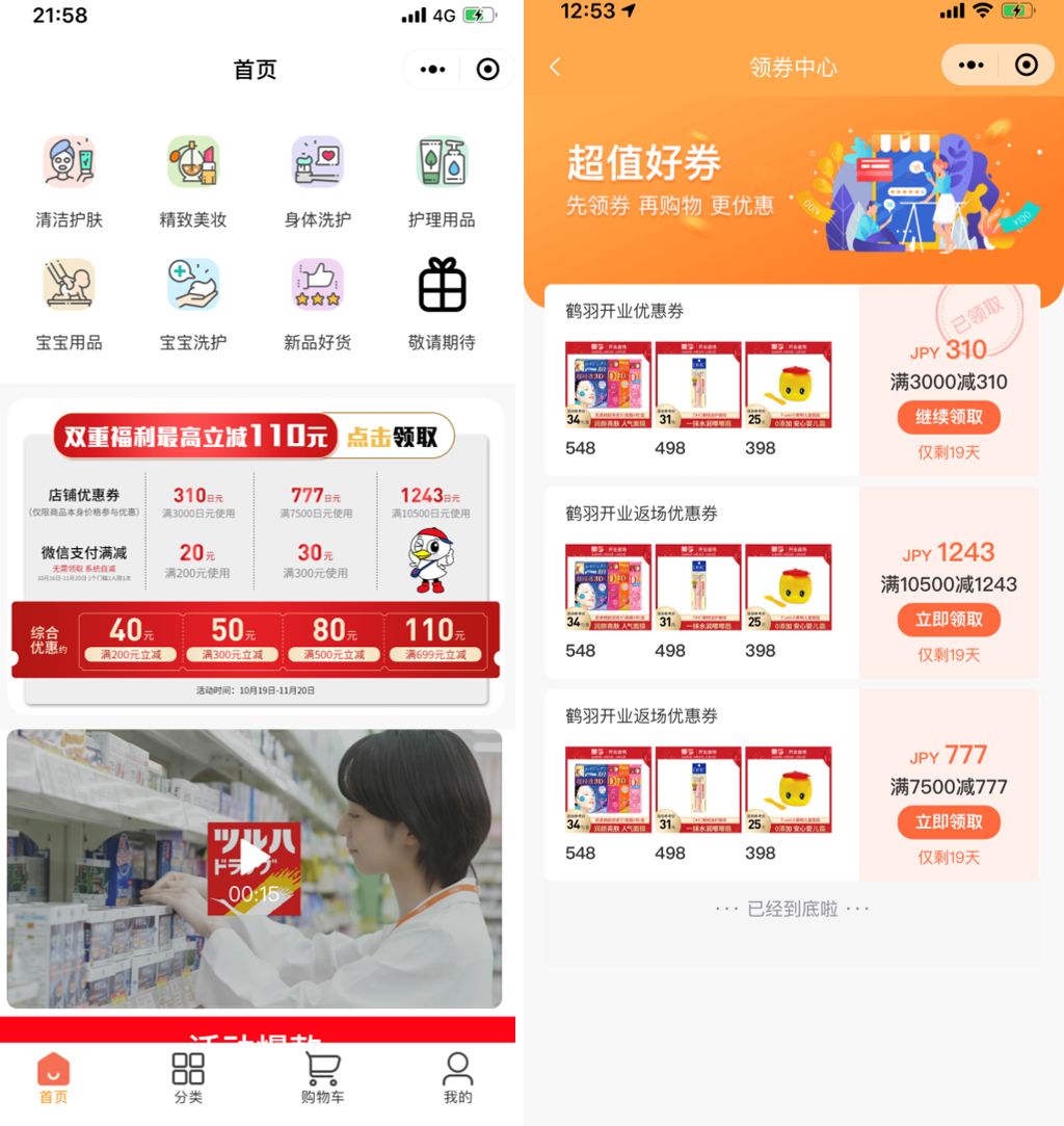 Shoppers can find coupons in the “Tsuruha Drug Express” Weixin Mini Program.