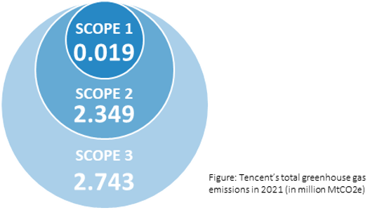 The report notes Tencent's total emissions were equivalent to 5.111 million metric tons of carbon dioxide in 2021, broken down into the following three categories: