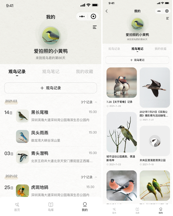 Birding has become more and more popular, partly due to the enjoyment of recording experiences digitally and forming a community with like-minded people on the app. However, not everyone has the time and energy to do it. That’s where the Mini Program comes in to make the hobby more accessible, by allowing people to find more information and save it in an in-app journal, just through a few taps on the screen.