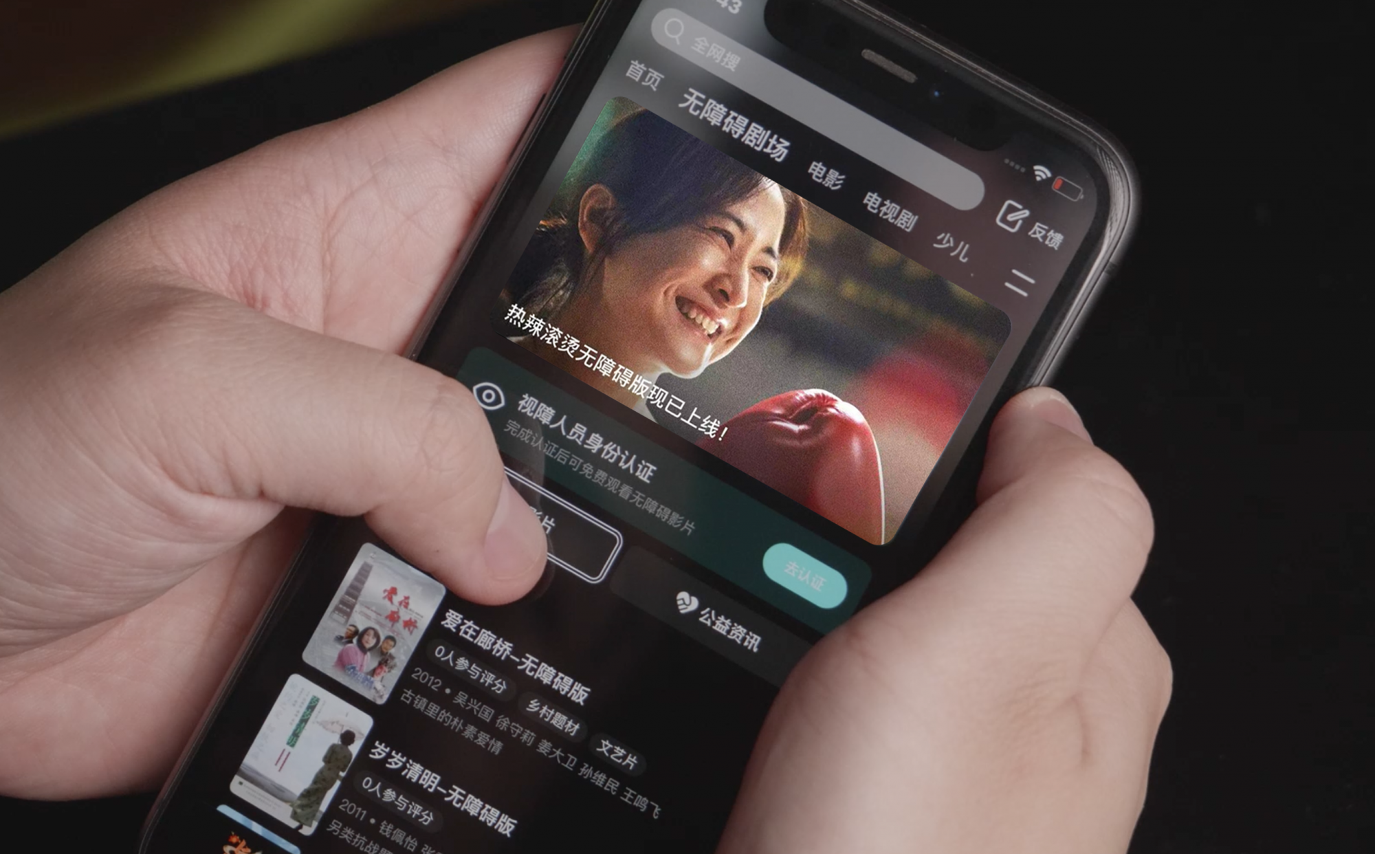 When someone with a visual impairment opens the Tencent Video app, the system detects the activated screen reader and automatically prioritizes the Accessible Theater on the home page, making watching movies smooth and intuitive.